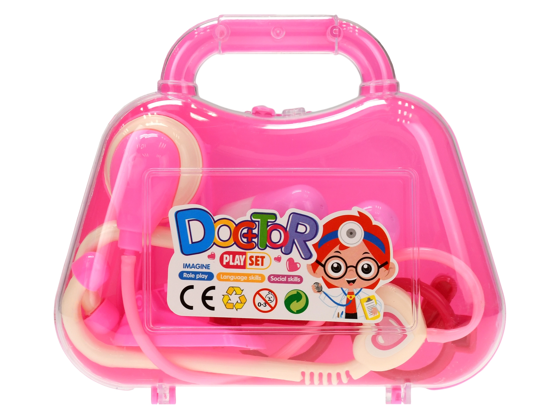Ľahký kufrík udrží všetky komponenty pokope a uľahčí ich prenášanie. Set je k dispozícii v dvoch atraktívnych farbách – modrej a ružovej, takže si každý nájde svoju obľúbenú. Hra rozvíja jemnú motoriku, komunikáciu a kreativitu.