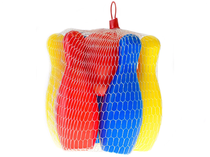 Súčasťou je červená loptička prispôsobená pre malé ruky. Celá sada je uložená v praktickej sieťke s pútkom, takže ju ľahko vezmete na ihrisko, k babičke alebo na dovolenku. Veselé farby (červená, modrá, žltá) motivujú deti k hre a podporujú spoločné zážitky s rodinou aj kamarátmi.