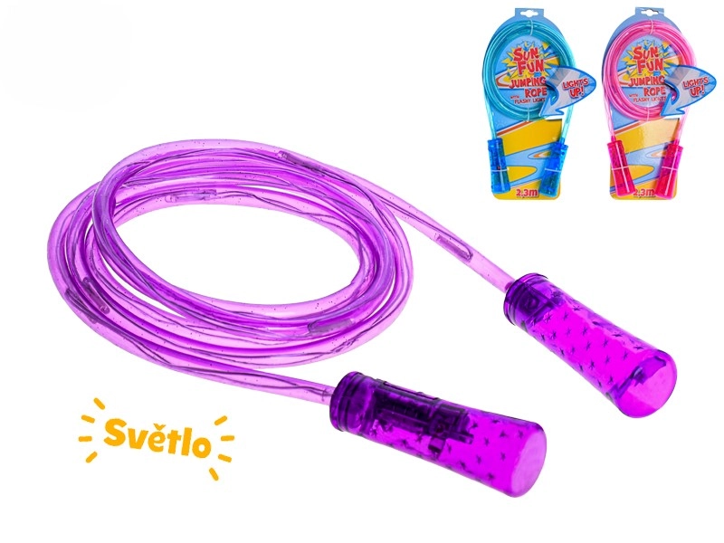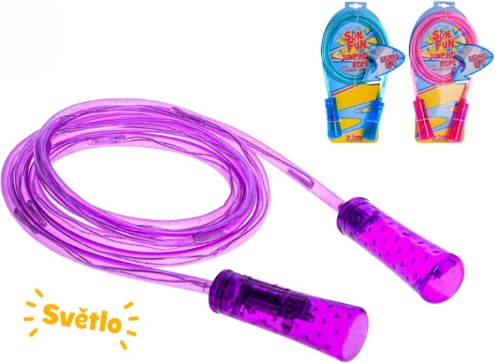 Lano s dĺžkou 210 cm možno ľahko prispôsobiť základným uzlíkom alebo skrátením, aby vyhovovalo rôznym výškam. Kvalitný plast odolá bežnému používaniu doma aj vonku. LED svetlá sú napájané batériami v balení, takže švihadlo je pripravené na okamžité použitie. K dispozícii v troch farbách – ružová, modrá a fialová – pre výber podľa štýlu.