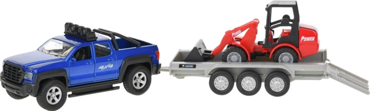 - Hračkárske auto SUV s prívesom a bagrom