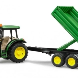 Objavte detailne spracovaný model traktora JOHN DEERE s valníkom v mierke 1:16, ktorý nadchne malých farmárov aj zberateľov. Ponúka množstvo funkčných prvkov – odnímateľné predné závažie, držiak pre čelný nakladač, predný aj zadný záves, profilované pneumatiky a riadenie predĺženým volantom v streche. Valník má sklopné bočnice, sklápaciu plošinu a stojí samostatne vďaka opore. Vyrobené z kvalitného ABS v Nemecku.