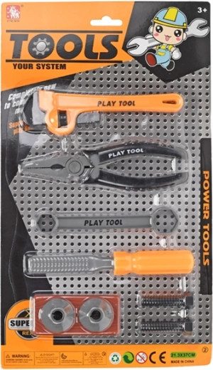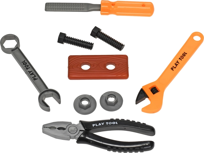 Táto detská sada náradia je ideálna pre malých staviteľov, ktorí chcú napodobňovať dospelých a učiť sa nové zručnosti formou hry. Deväťdielna sada obsahuje základné nástroje na jednoduché domáce „opravy” a tvorenie.