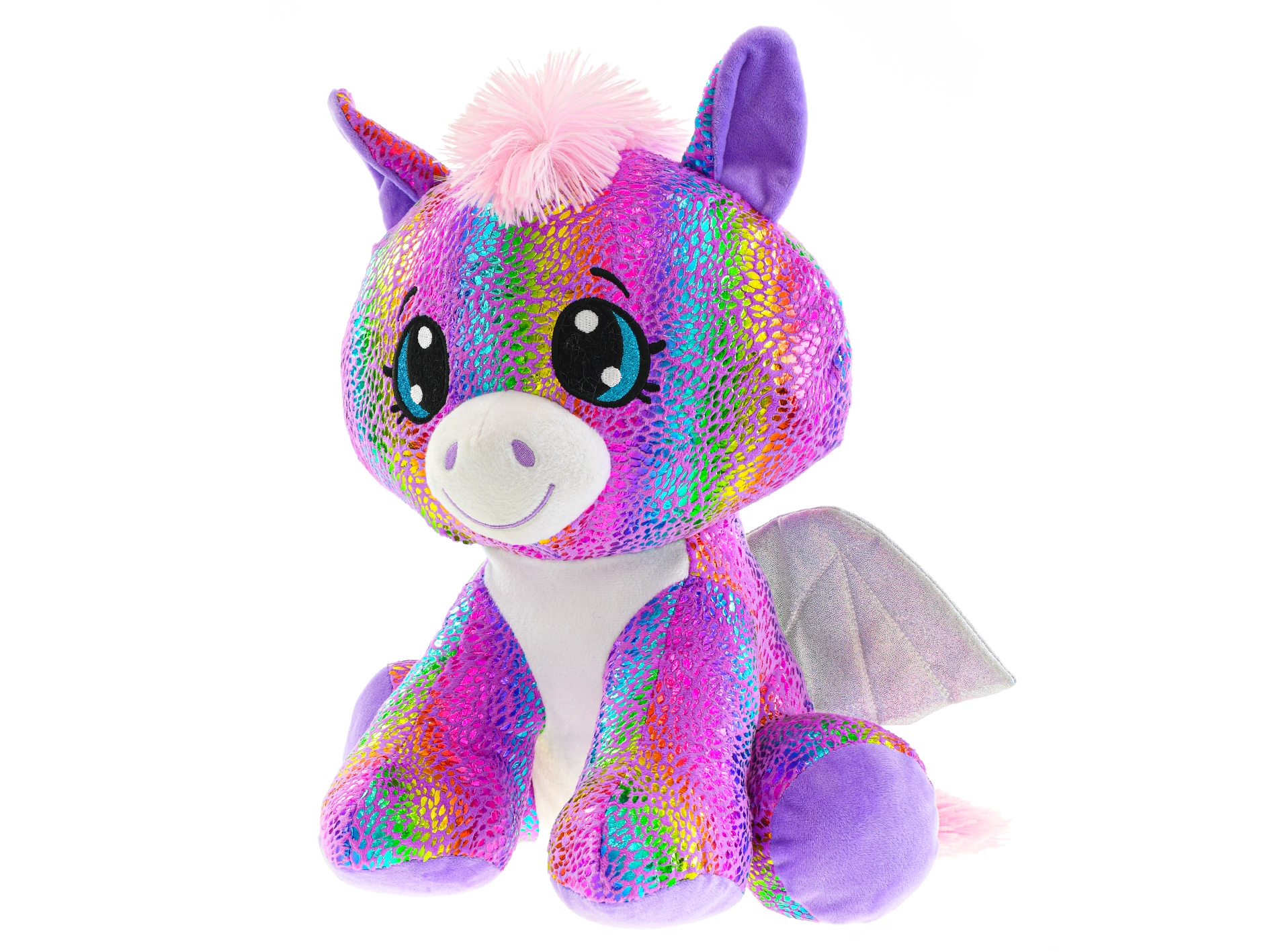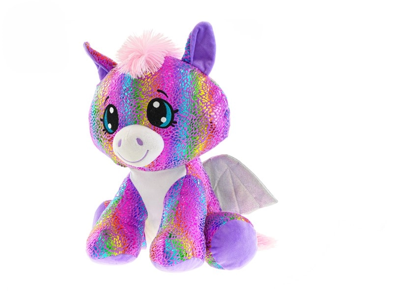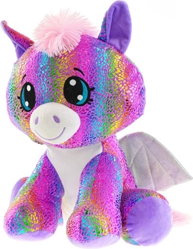 Tento farebný pegas prináša deťom kúzlo fantázie a jemné pohladenie v jednom. Je vyrobený z hebkého plyšu s trblietavými hviezdičkami a dúhovými efektmi, ktoré zaujmú každého malého milovníka čarovných tvorov. Sediaci tvar zabezpečuje stabilitu a jednoduché vystavenie na poličke či nočnom stolíku.