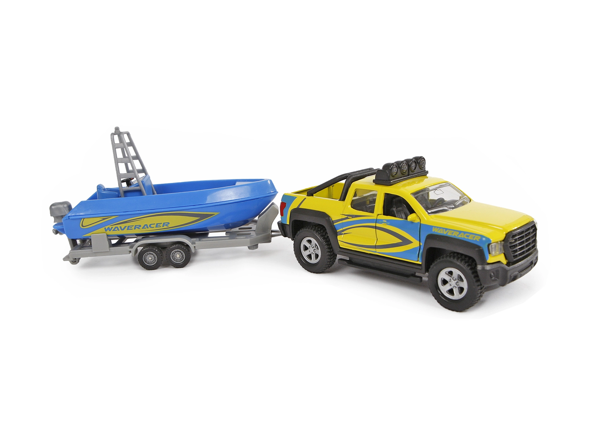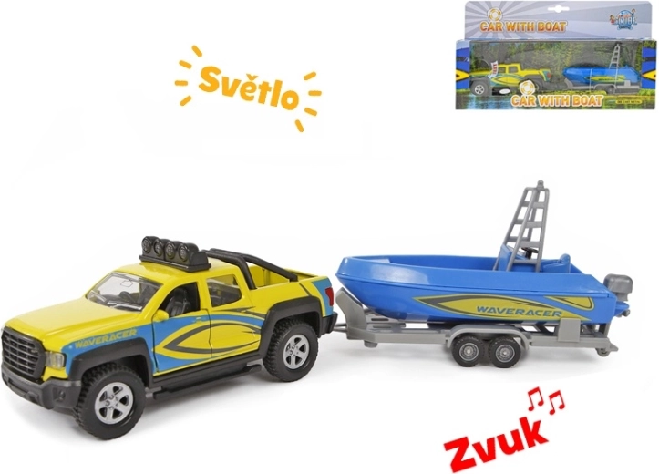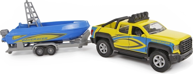 Súčasťou setu je príves s krásnou modrou loďou, s ktorou deti zažijú množstvo zábavy pri hrách na prepravu a dobrodružstvá pri vode. Ideálne ako darček pre milovníkov áut a modelov, ktorý podporuje fantáziu a rozvoj motoriky.