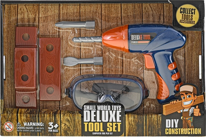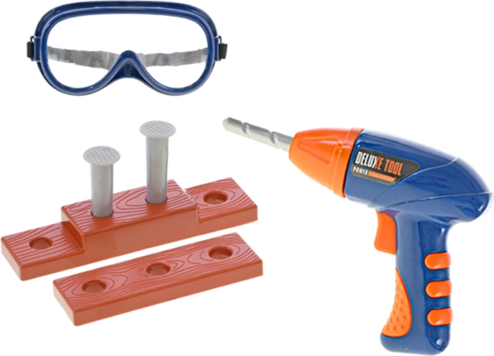 Zábavná a bezpečná sada pre malých kutilov obsahuje spolu 8 dielov vrátane realistickej vŕtačky s rozmermi 19 × 14 cm. Všetko je vyrobené z ľahkého, zdravotne nezávadného plastu pre jednoduchú manipuláciu malých rúk. Súčasťou sú tiež kladivo, skrutkovač, kľúč a ochranné okuliare. Praktická krabička 33 × 22 × 5 cm zabezpečuje ľahké prenášanie a skladovanie. Ideálne pre deti od 3 rokov na rozvoj jemnej motoriky, koordinácie a kreativity.