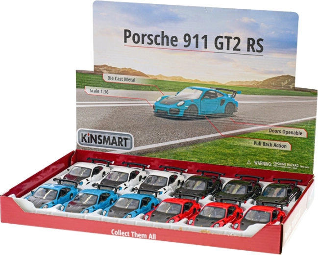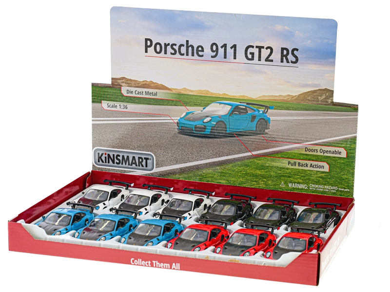 Precízne spracovaný kovový model vozidla PORSCHE 911 GT2 RS v mierke 1:36 od značky Kinsmart nadchne deti aj zberateľov. Ponúka detailné prevedenie, otváracie bočné dvere a zábavný spätný natahovací mechanizmus na jazdu dopredu. Vďaka kombinácii kovu a plastu je model odolný a ľahký, dlhý 12,5 cm a vhodný pre deti od 3 rokov.