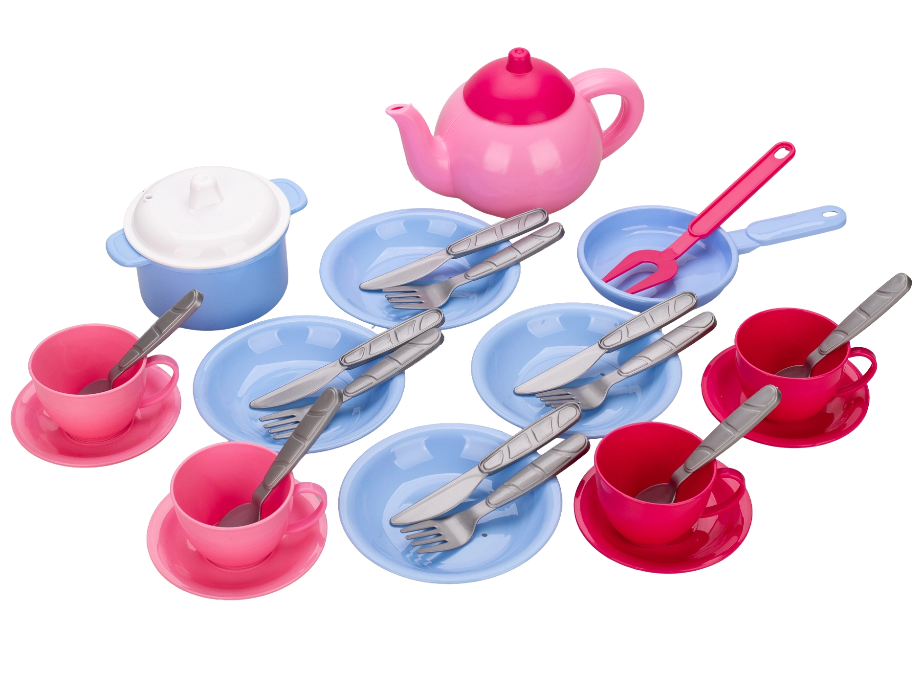 Zábavná detská sada riadu do kuchynky s 30 farebnými dielmi poteší malých kuchárov aj kuchárky. Obsahuje kanvicu, hrniec s pokrievkou, panvicu, taniere, príbory, šálky a podšálky pre realistickú hru na varenie a servírovanie. Ľahký a odolný plast je ideálny pre detské ruky a podporuje fantáziu, jemnú motoriku a sociálne zručnosti. Vhodné pre deti od 3 rokov.