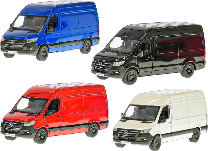 Detailne spracovaný kovový model dodávky Mercedes‑Benz Sprinter v mierke 1:48 poteší deti aj zberateľov. Ponúka otváracie dvere, realistické rozmery (12,5 × 5,5 × 5,5 cm) a zábavný pull‑back mechanizmus na jazdu vpred. Dostupný v 4 farbách, vyrobený z odolnej kombinácie kovu a plastu, vhodný od 3 rokov.