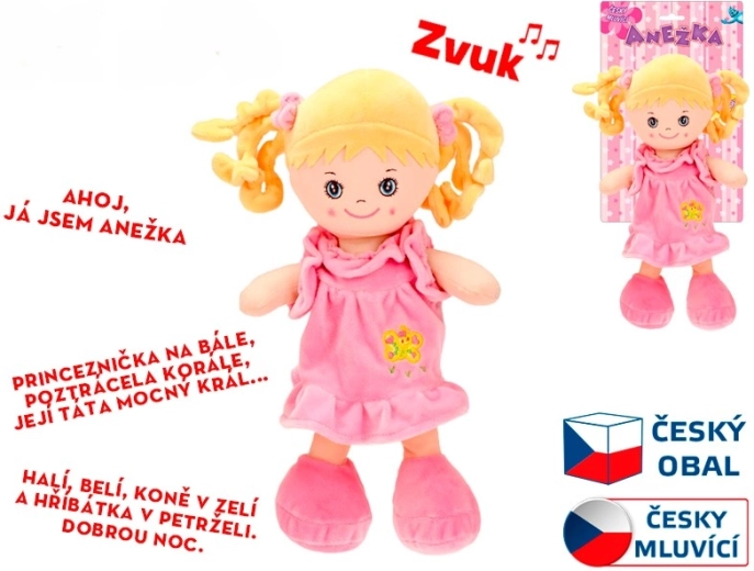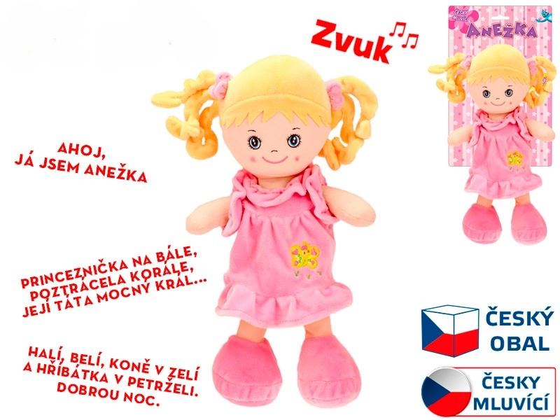 Bábika Anežka sa rýchlo stane najobľúbenejšou kamarátkou každej malej princeznej. Recituje milú básničku o princeznej a spieva známe slovenské pesničky, napríklad „Haja, buvaj“. Jej mäkké látkové prevedenie je príjemné na dotyk a bezpečné aj pre najmenšie bábätká.