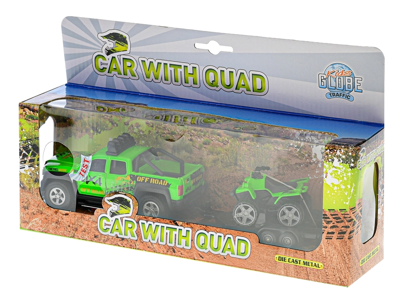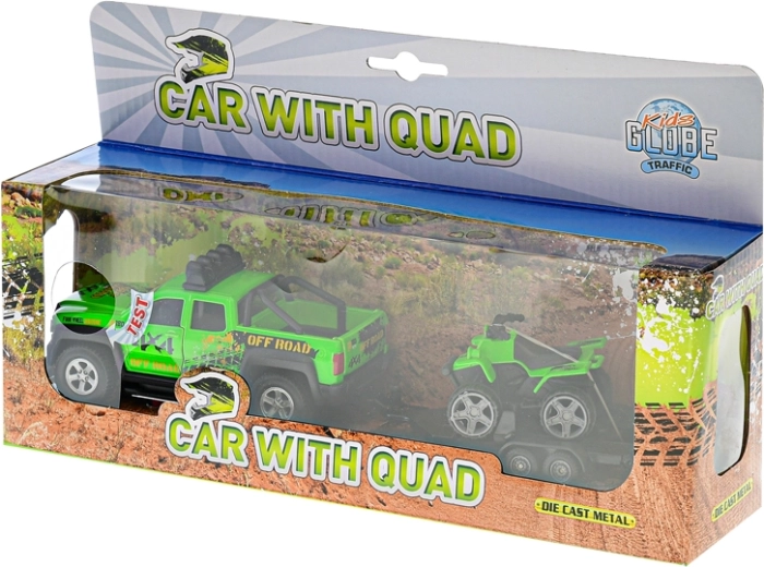 Súčasťou balenia je všetko, čo deti potrebujú na okamžité hranie: auto, príves, štvorkolka aj batérie. Kompaktné balenie uľahčuje skladovanie a prenášanie, takže je set skvelý na doma aj na cesty.