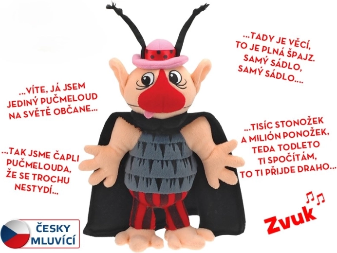 Hračka je hovoriaca po česky a obsahuje obľúbené vety, ako napríklad: „Tak sme chytili Pučmelouda…“, „…samé sadlo, samé sadlo…“, „Viete, ja som jediný Pučmeloud na svete…“ alebo „Čo to je? To je nejaká muzika, toto…?“