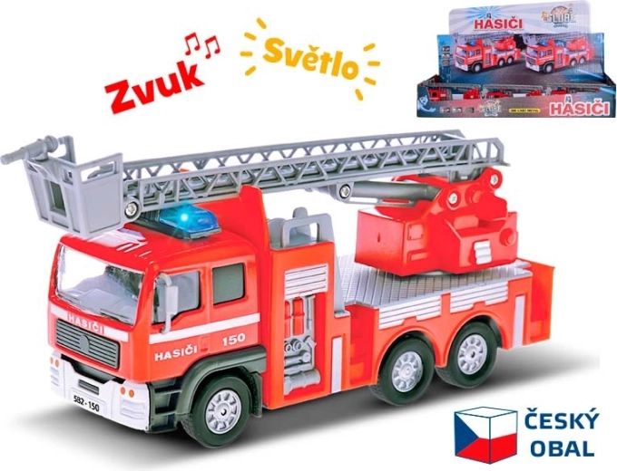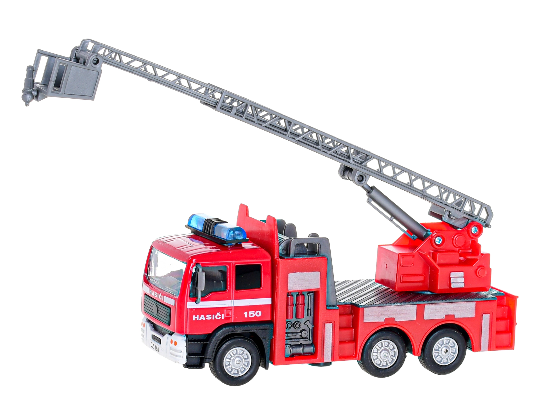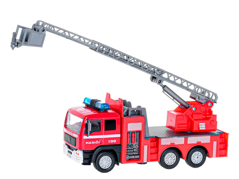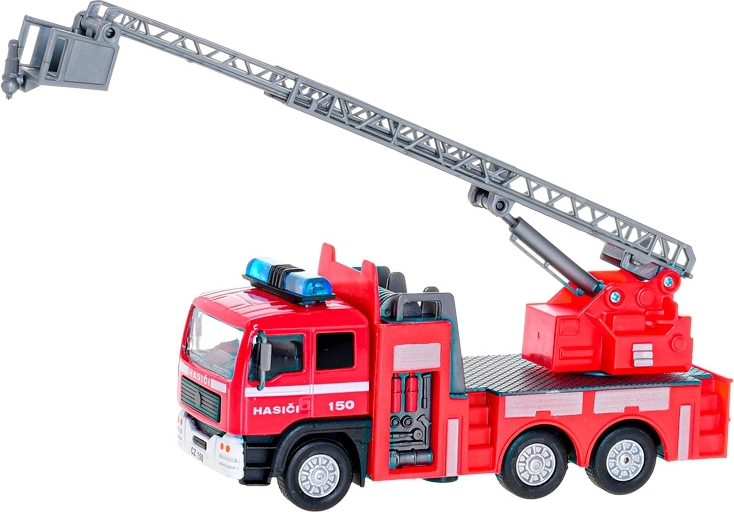 Model ponúka svetelné a zvukové efekty pre autentickejší zážitok, spätný chod (pull-back) pre rýchlu jazdu bez batérií v motore a otočný, výsuvný rebrík na simuláciu záchranných zásahov. Batérie 3× LR44 sú v balení, takže je okamžite pripravený do akcie.