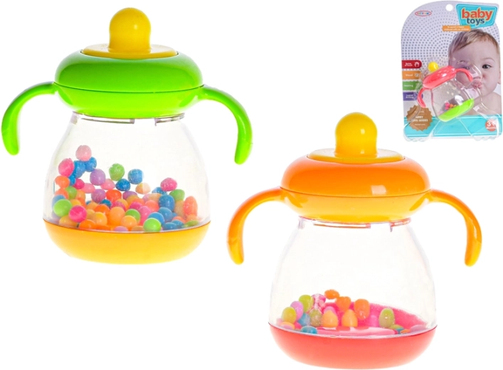 Prvá zábava pre najmenších! Hrkálka v tvare fľaštičky je navrhnutá tak, aby ju bábätko ľahko uchopilo, skúmalo a bezpečne využívalo pri hre. Jemné zvuky hrkania podporujú rozvoj sluchového vnímania, zatiaľ čo rôzne farby podnecujú zrak a zvedavosť.