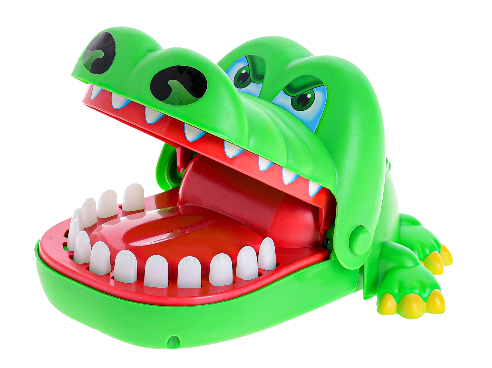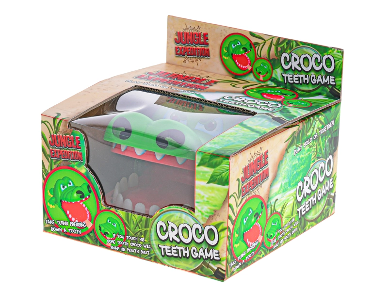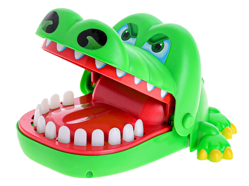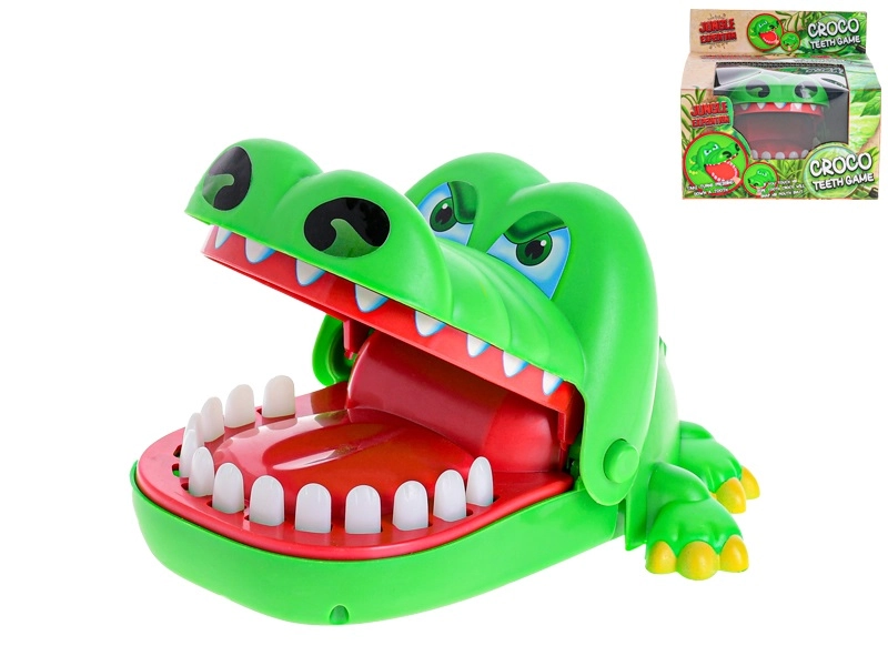 Veselý zelený krokodíl s otváracou papuľou prináša napínavú akciu do každej hry. Hráči si striedavo vyberajú zuby a jemne ich stlačia – jeden z nich spustí okamžité cvaknutie papule, ktoré prekvapí a rozosmeje celú partiu.
