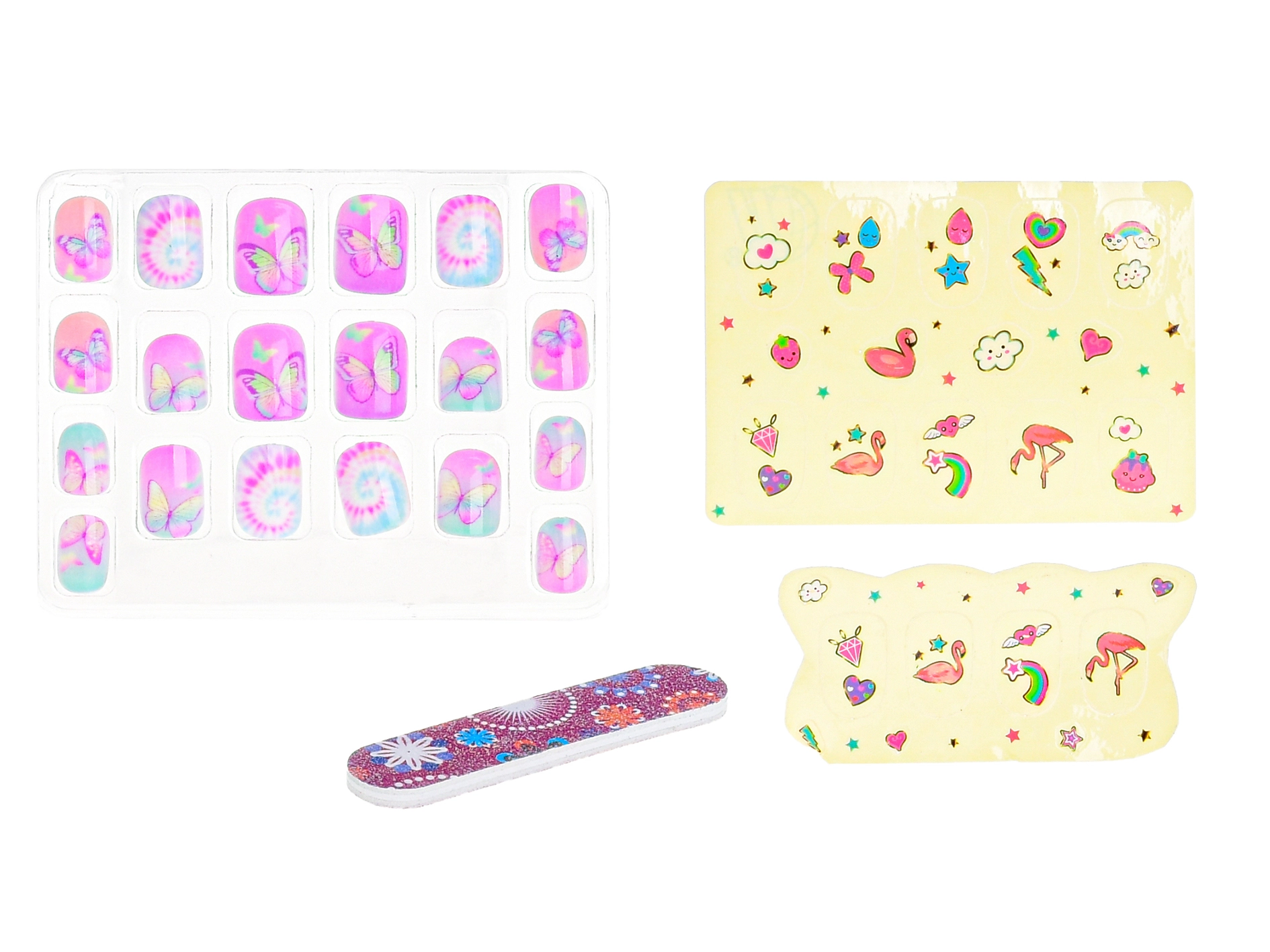 Sada nalepovacích detských nechtov s nálepkami a pilníkom premení každú hru na kreatívny zážitok. Nechty sa jednoducho pripevnia bez použitia lepidla, takže sú vhodné pre detské ruky a ich bezpečné a rýchle zdobenie. Vďaka rôznym farbám a samolepkám si deti ľahko vytvoria vlastný štýl.
