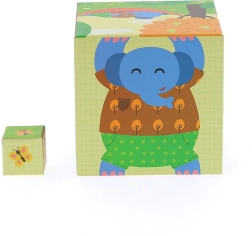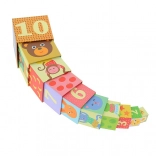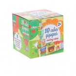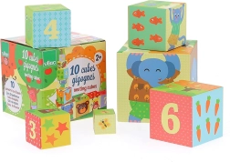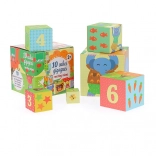 Každá kocka nesie čísla 1–10, farby a motívy zvieratiek. Deti si hravou formou osvoja počítanie aj rozpoznávanie tvarov a vzorov.