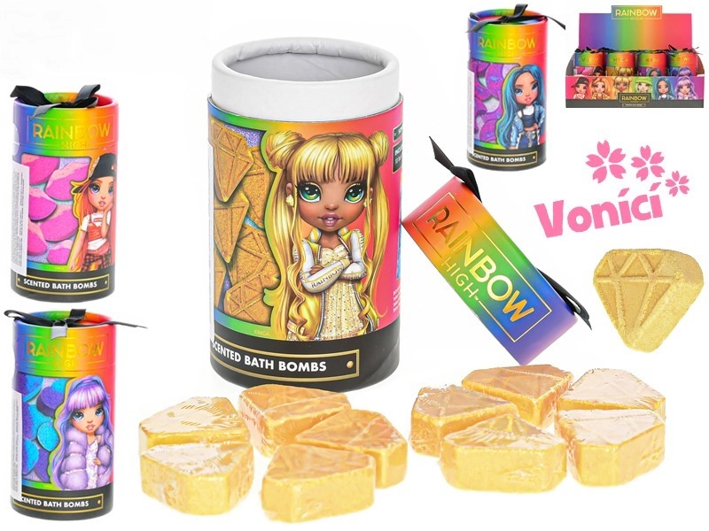 Hravé tvary diamant, srdce, pery a mesiac potešia deti aj dospelých. Sladká vôňa a jemné šumenie spravia z kúpeľa chvíľku pohody po dlhom dni. Skvelý tip na darček pre milovníkov značky RAINBOW HIGH aj pre tých, ktorí si chcú užiť domáci wellness.