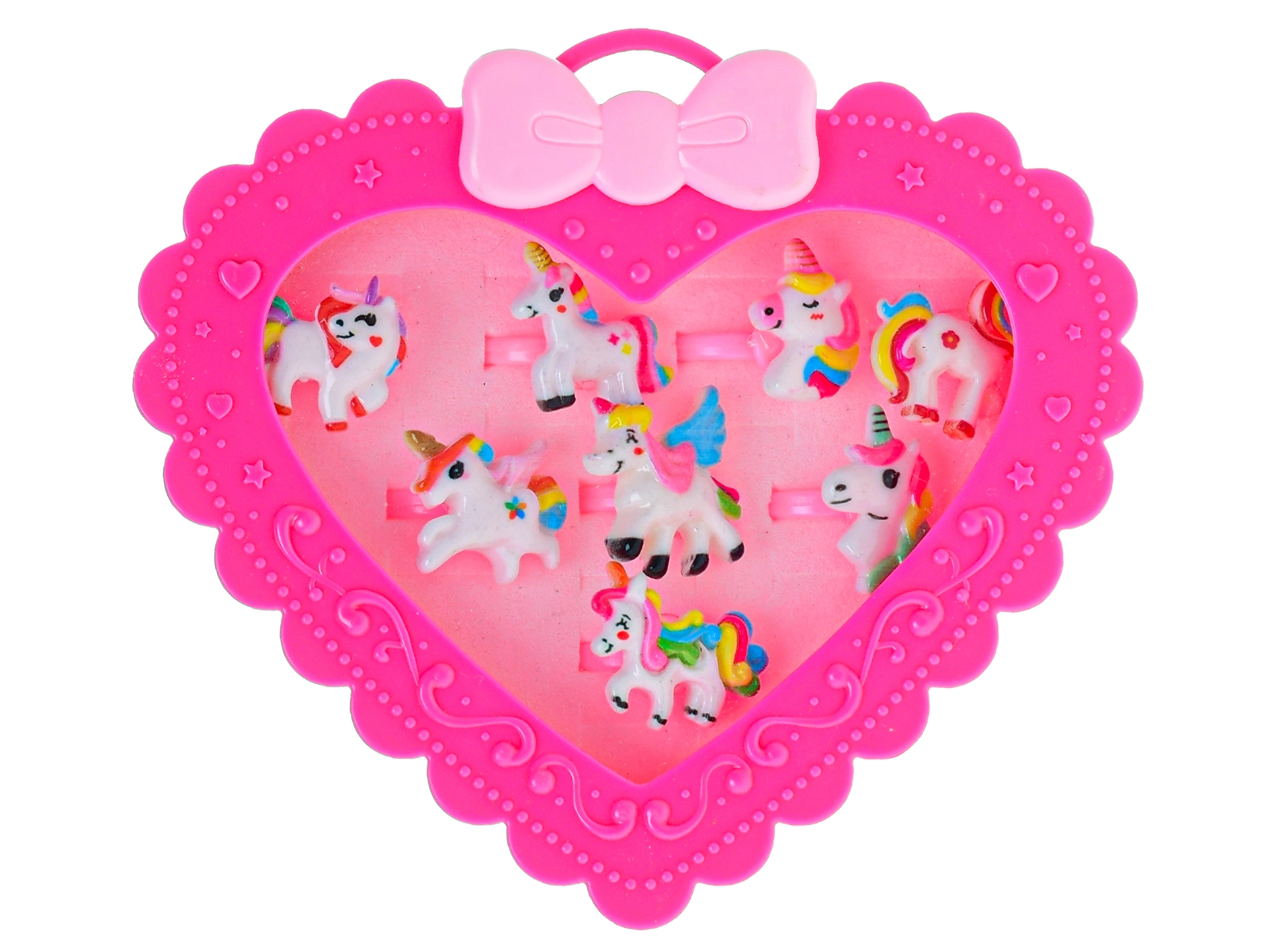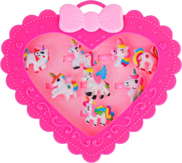 Roztomilá sada detských prstienkov s motívom jednorožca poteší každú malú parádnicu. V elegantnej krabičke v tvare srdca nájdete 12 rôznych prstienkov so žiarivými motívmi, ktoré zaujmú na prvý pohľad. Prstienky majú nastaviteľnú veľkosť pre pohodlné nosenie a sú dostupné v dvoch ružových odtieňoch. Ideálny darček pre deti od 3 rokov na narodeniny aj sviatky.