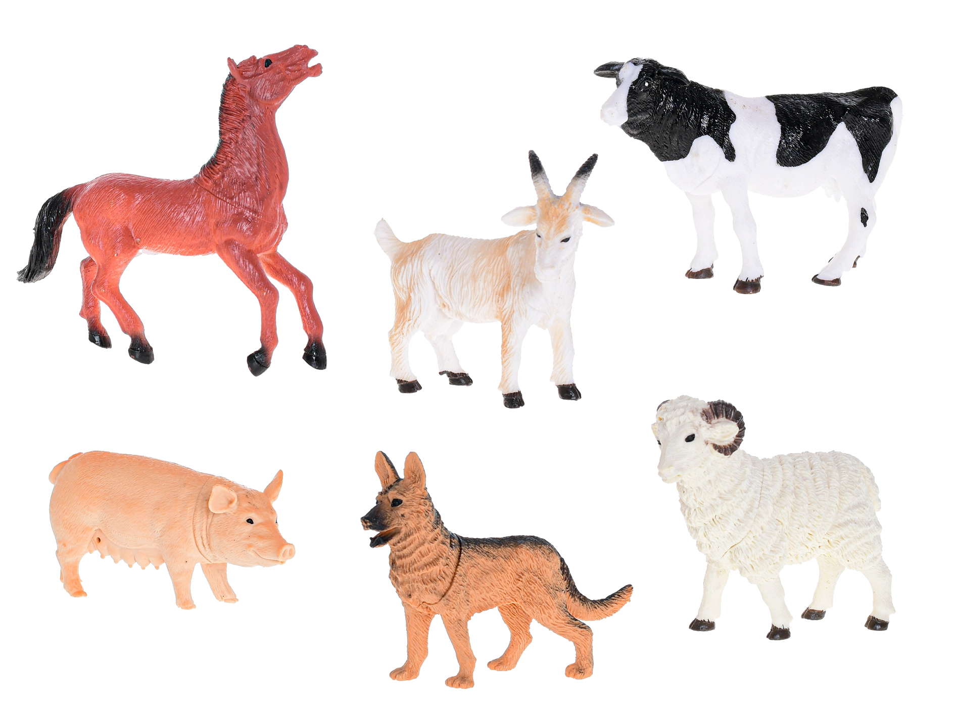 - 6 druhov zvierat: prasa, koza, baran, kôň, pes, krava