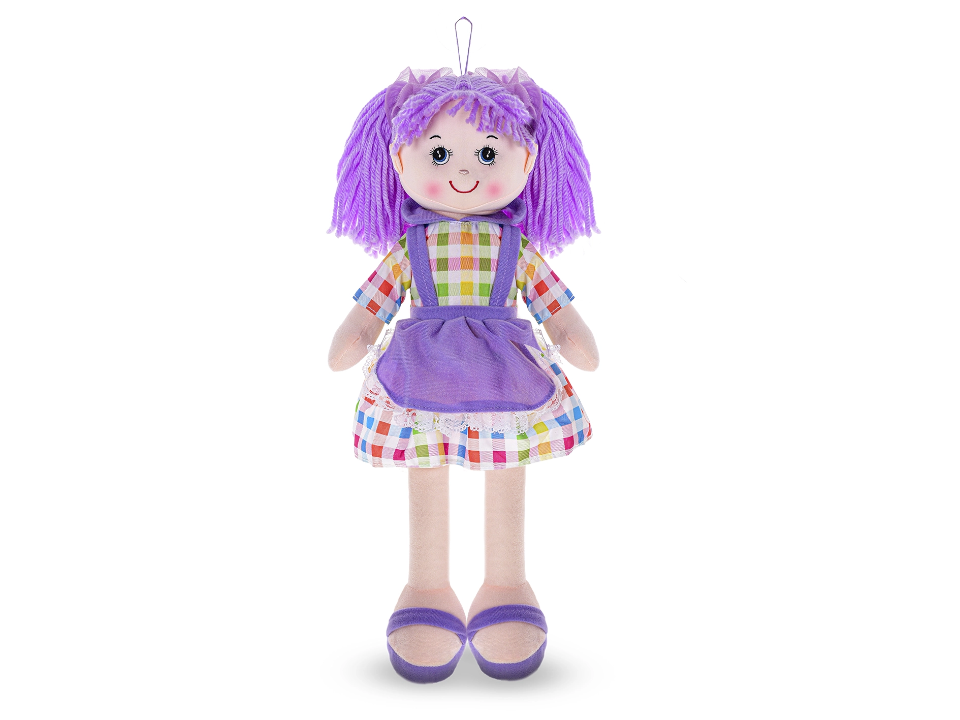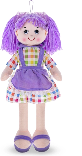 Fialové šatočky a vlásky z vlny dodávajú bábike autentický vzhľad, ktorý deti milujú. Vďaka výške 50 cm je ako stvorená na objímanie, hranie sa na mamičku aj spoločné zaspávanie.