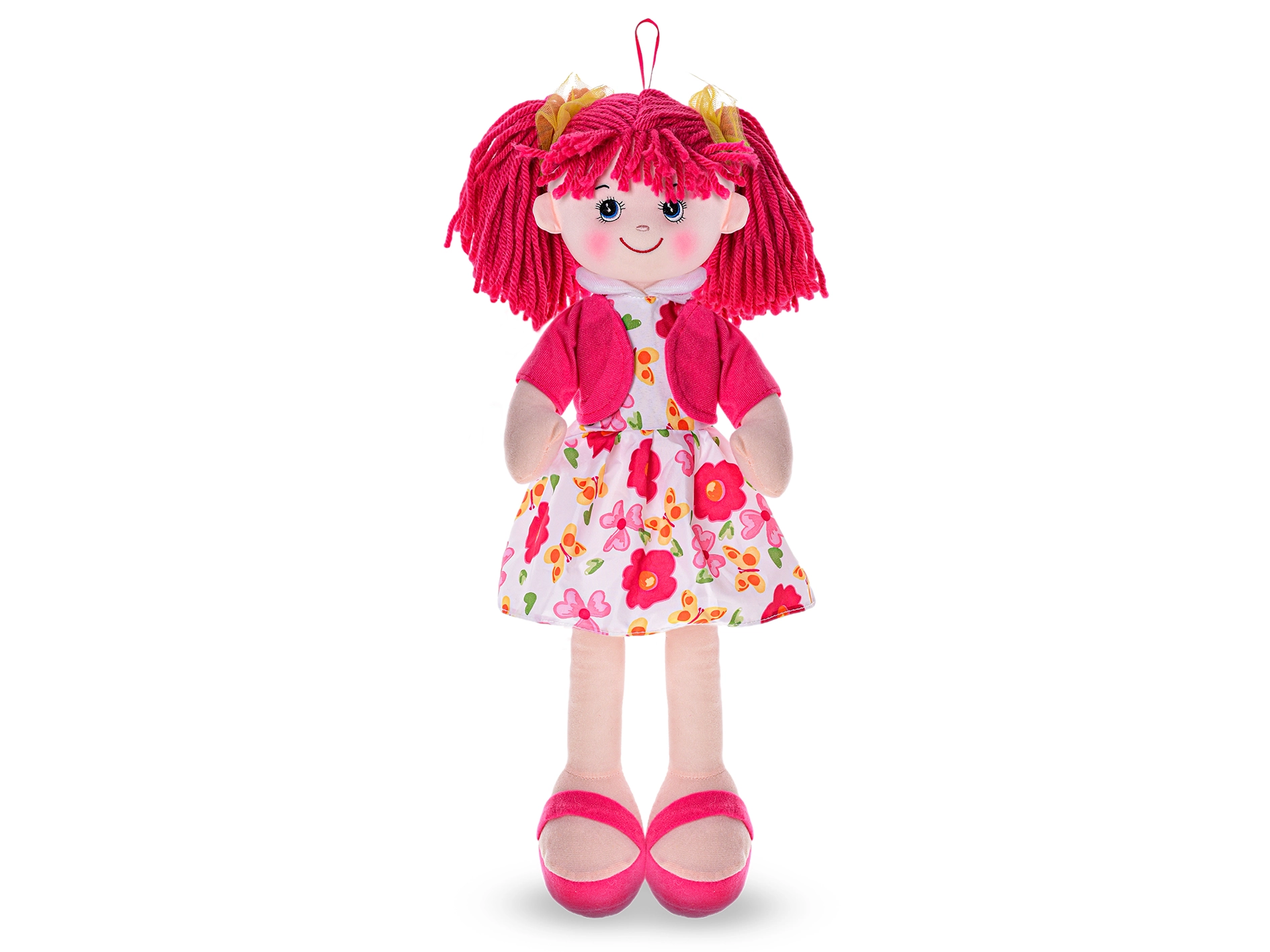 Bábika je vyrobená z mäkkého textilu, je príjemná na dotyk a bezpečná pre bábätká. Vďaka červenému oblečeniu zaujme na prvý pohľad a stane sa obľúbenou kamarátkou do kočíka aj do postieľky. Batérie (3× AG13) sú už priložené, takže bábika je pripravená na okamžité použitie.