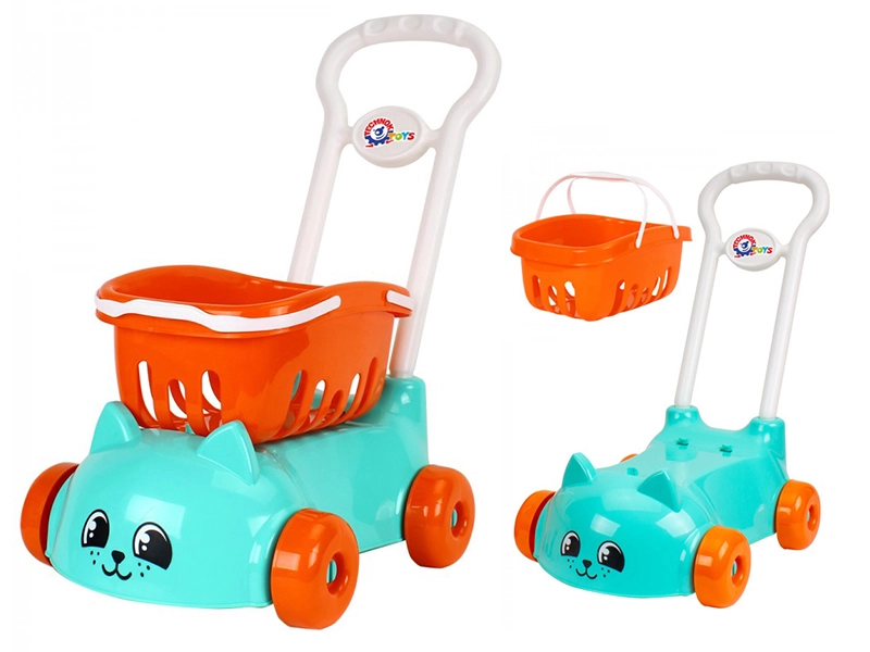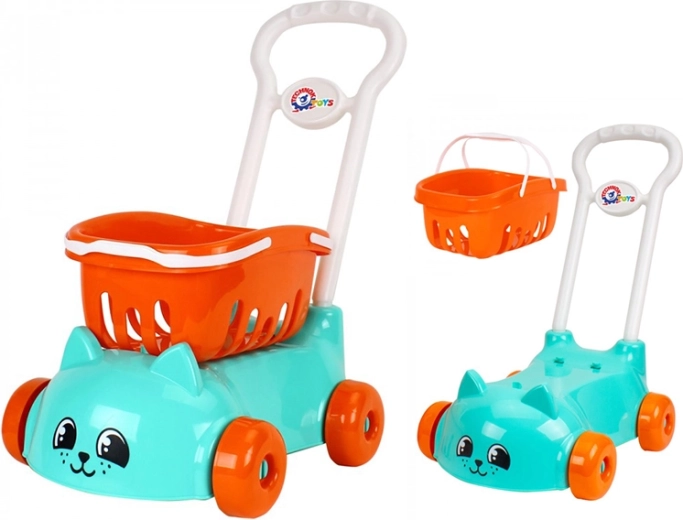 Hľadáte zábavnú hračku pre malých obchodníkov? Tento detský nákupný vozík v krásnej tyrkysovej farbe s roztomilým motívom mačky nadchne každé dieťa. Vďaka odnímateľnému košíku je ideálny na prevoz hračiek a potravín pri hre na obchod. Ľahký, ľahko ovládateľný a vhodný pre deti od 3 rokov.