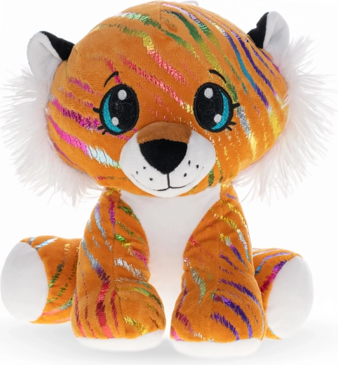 Plyšový tiger STAR SPARKLE je spoločník, do ktorého sa deti zamilujú na prvý dotyk. Je vyrobený z mäkkého plyšu, ktorý je príjemný a bezpečný aj pre najmenších. Sediace prevedenie dodáva hračke stabilitu a rozkošný vzhľad, zatiaľ čo trblietavé dúhové detaily podčiarkujú jeho čarovný dizajn.