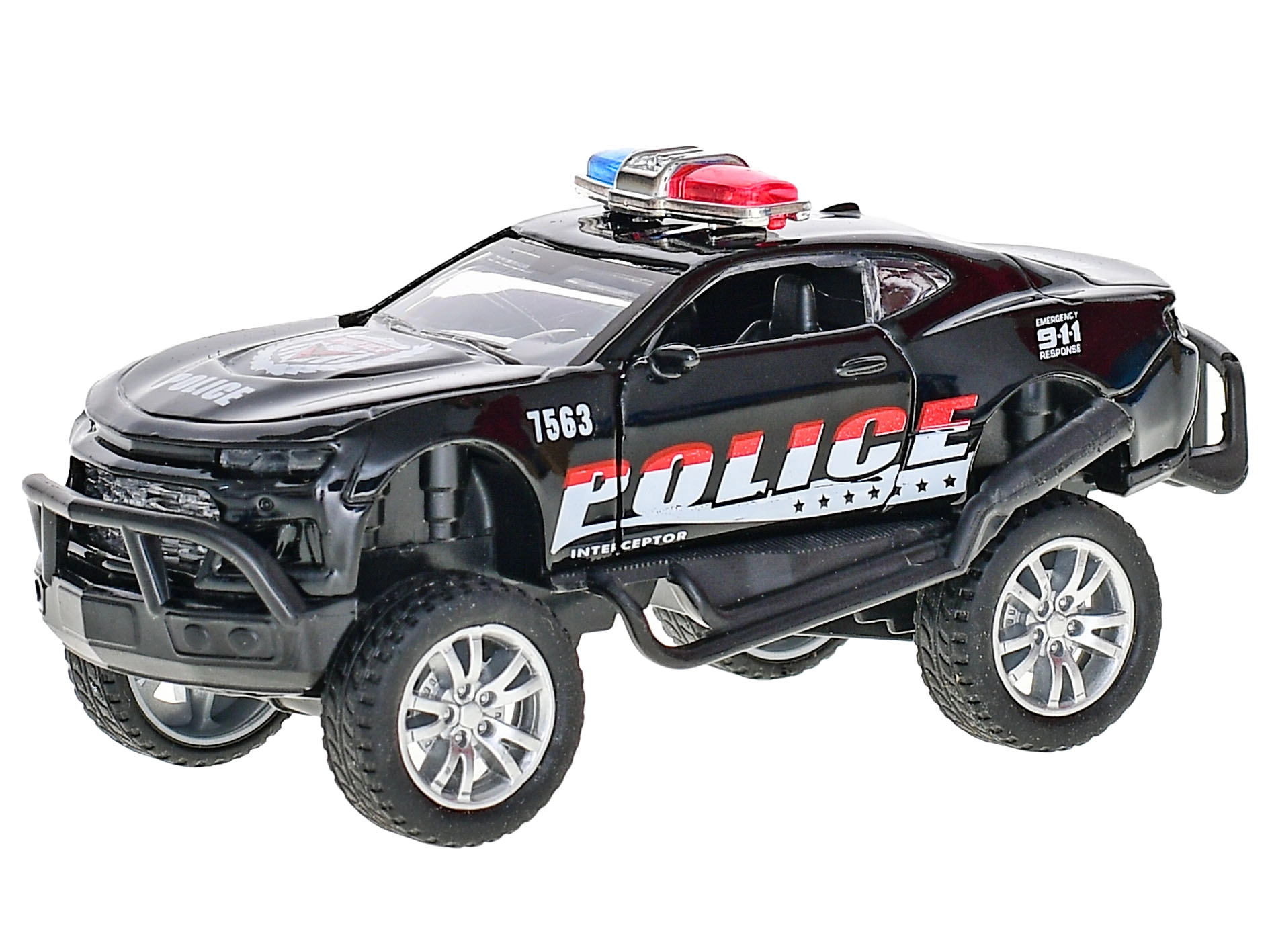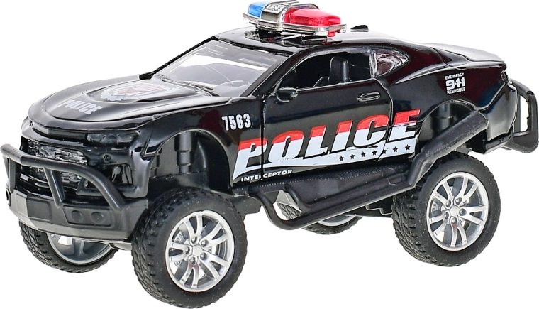 Kompaktné kovové policajné auto s dĺžkou 13 cm poteší všetkých malých fanúšikov zásahových vozidiel. Vďaka spätnému naťahovaniu sa po pustení rozbehne dopredu a prinesie ešte viac zábavy pri hre. Odolná kombinácia kovu a plastu zaručuje dlhú životnosť, dve farebné varianty (biela, čierna) umožnia výber podľa vkusu. Vhodné od 3 rokov, balené v krabičke – skvelé aj ako darček.