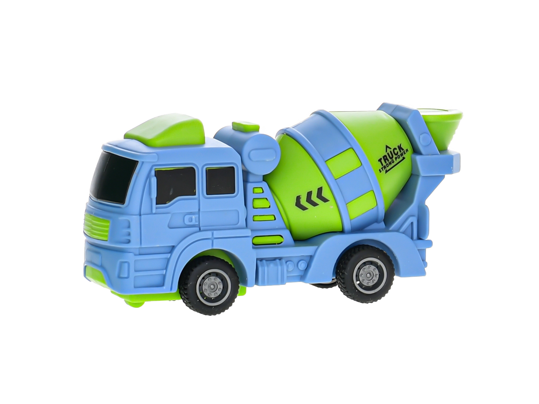 Roztomilá plastová auto miešačka s dĺžkou 10 cm poteší každého malého staviteľa od 3 rokov. Po stlačení tlačidla na streche sa autíčko samo rozbehne vpred, čo zaručuje zábavu a rozvoj jemnej motoriky. Vďaka kompaktným rozmerom je ideálna na hranie doma aj vonku a je k dispozícii v štyroch farebných variantoch.