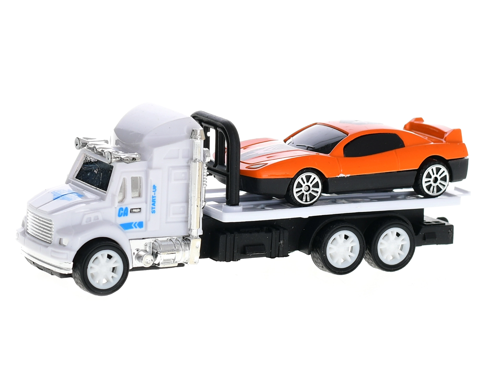 Toto kompaktné nákladné auto so zotrvačníkovým pohonom sa po potiahnutí dozadu rozbehne vpred a ponúkne deťom interaktívnu hru bez potreby batérií. Súčasťou je aj menšie vozidlo (4–7,5 cm), ktoré možno umiestniť na plošinu – ideálne na tvorbu vlastných dopravných príbehov.