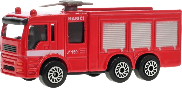 Detailne spracované hasičské autíčko s dĺžkou 8 cm z kombinácie kovu a plastu poteší malých hrdinov už od 3 rokov. Ponúka dve akčné varianty – vodné delo alebo výsuvný rebrík – pre realistické zásahy. Voľnobeh koliesok zaručuje plynulú jazdu a okamžitú zábavu, zatiaľ čo kompaktné balenie s českým motívom „Hasiči 150“ uľahčuje skladovanie aj prenášanie.