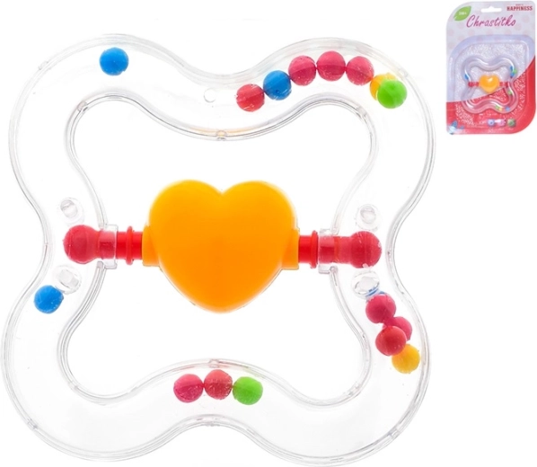 Roztomilá hrkálka s otočným srdiečkom je ideálna prvá hračka pre deti od 3 mesiacov. Ľahko sa uchopí malými rúčkami, podporuje zmyslový rozvoj, jemnú motoriku a zaujme atraktívnym dizajnom. Vyrobená z kvalitného a bezpečného plastu, vhodná na doma aj na cesty.