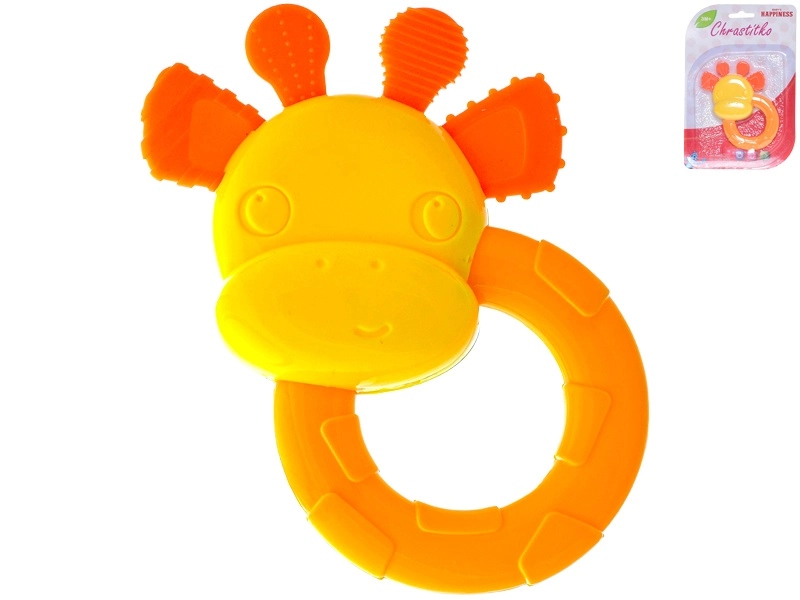 Veselý žirafí motív a kontrastné, pestré farby prirodzene podnecujú zrakové vnímanie a zvuk hrkalky motivuje k objavovaniu. Hračka je vyrobená z bezpečných, ľahko umývateľných materiálov, takže je praktická na každodenné používanie aj cestovanie.