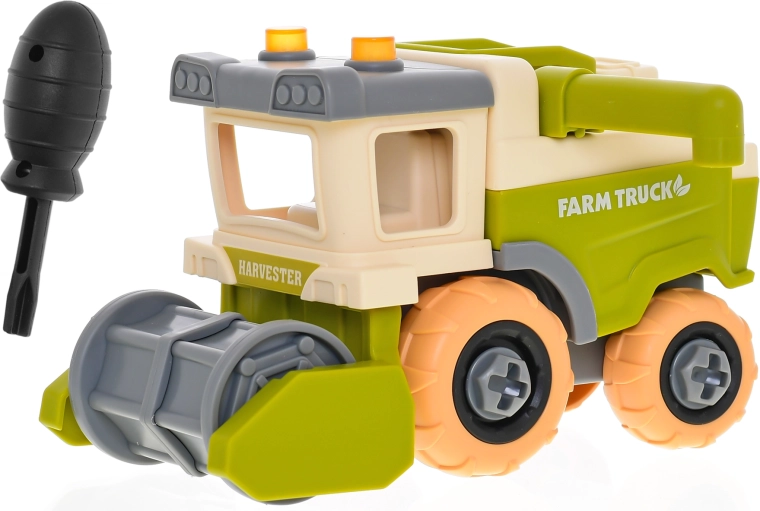 Tento detailne spracovaný skrutkovací kombajn umožní deťom vyskúšať si rolu malého mechanika. Pomocou priloženého skrutkovača môžu hračku rozobrať a znovu zostaviť, čím rozvíjajú trpezlivosť, koordináciu oko–ruka a technické zručnosti. Vďaka voľnobehu sa kombajn pohybuje plynule bez potreby batérií.