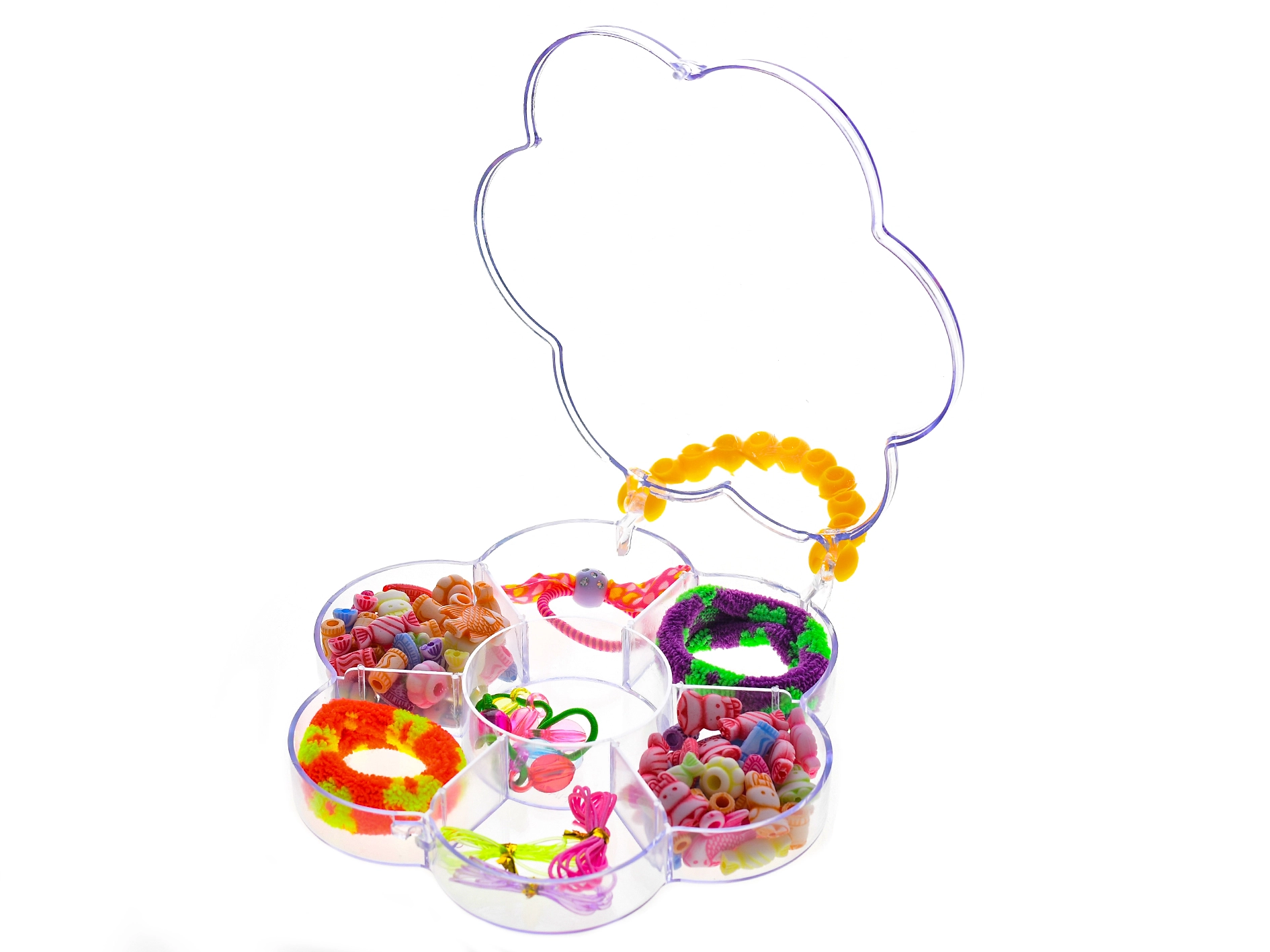 Táto hravá sada je ideálna pre malé parádnice, ktoré milujú originálne účesy a tvorbu vlastných vlasových ozdôb. Vďaka pestrej škále tvarov a farieb môžu deti kombinovať koráliky a doplnky a vytvárať jedinečné štýly presne podľa svojej fantázie. Všetko je uložené v prehľadnej krabičke, ktorá uľahčuje skladovanie aj prenášanie.