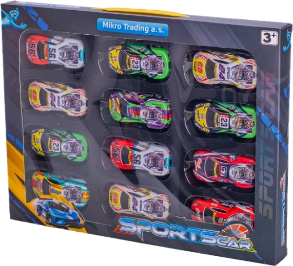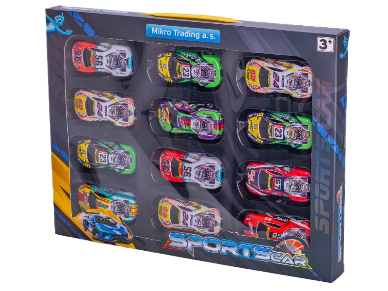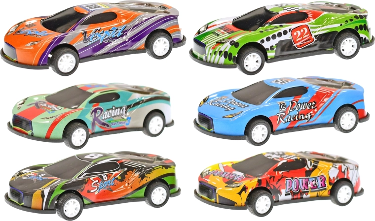 Zábavná sada pretekárskych autíčok s dĺžkou 8,5 cm poteší malých fanúšikov motorizmu. Každý model je z odolnej kombinácie kovu a plastu a má mechanizmus spätného natiahnutia pre rýchly štart vpred. Balenie obsahuje 12 farebných autíčok, ktoré podporujú rozvoj motoriky, predstavivosti a súťaživosti. Vhodné pre deti od 3 rokov.