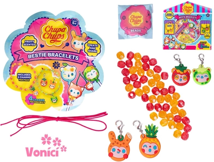 Objavte zábavné a kreatívne voňavé náramky priateľstva CHUPA CHUPS pre deti od 5 rokov. V balení nájdete 2 ľahké plastové náramky s príveskami, ktoré si deti môžu zostaviť podľa svojej fantázie. Každý náramok príjemne vonia, takže je nielen štýlovým doplnkom, ale aj zmyslovým zážitkom. Skvelé na rozvoj kreativity a jemnej motoriky a ideálne na zdieľanie s kamarátom alebo súrodencom.
