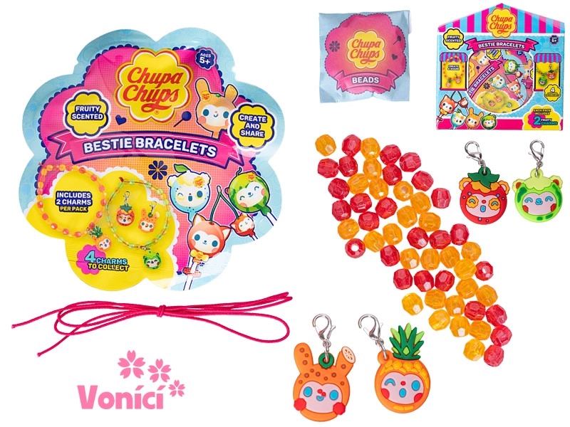 Voňavé náramky priateľstva CHUPA CHUPS sú perfektnou voľbou pre malých tvorcov, ktorí radi kombinujú farby, prívesky a vône. Vďaka ľahkému plastovému materiálu sa pohodlne nosia po celý deň a ich jednoduchý dizajn umožňuje ľahké zostavenie aj menším deťom.