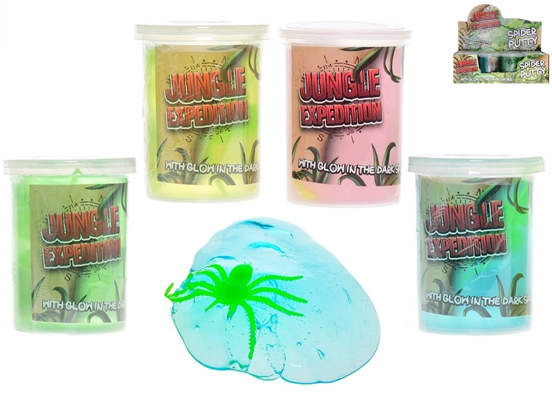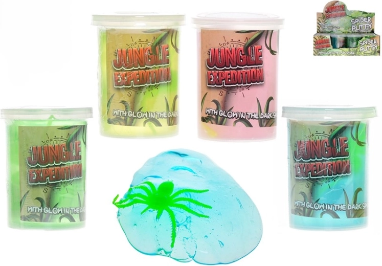 Jungle Expedition svietiaci sliz s pavúkom je skvelou voľbou pre malých objaviteľov. Vo vnútri farebnej hmoty sa skrýva malý pavúk, ktorý po nasvietení v tme svieti a dodáva hre tajomnú atmosféru. Vďaka kompaktnému priesvitnému kelímku je sliz ľahko prenosný a vždy pripravený na hranie doma aj na cestách.