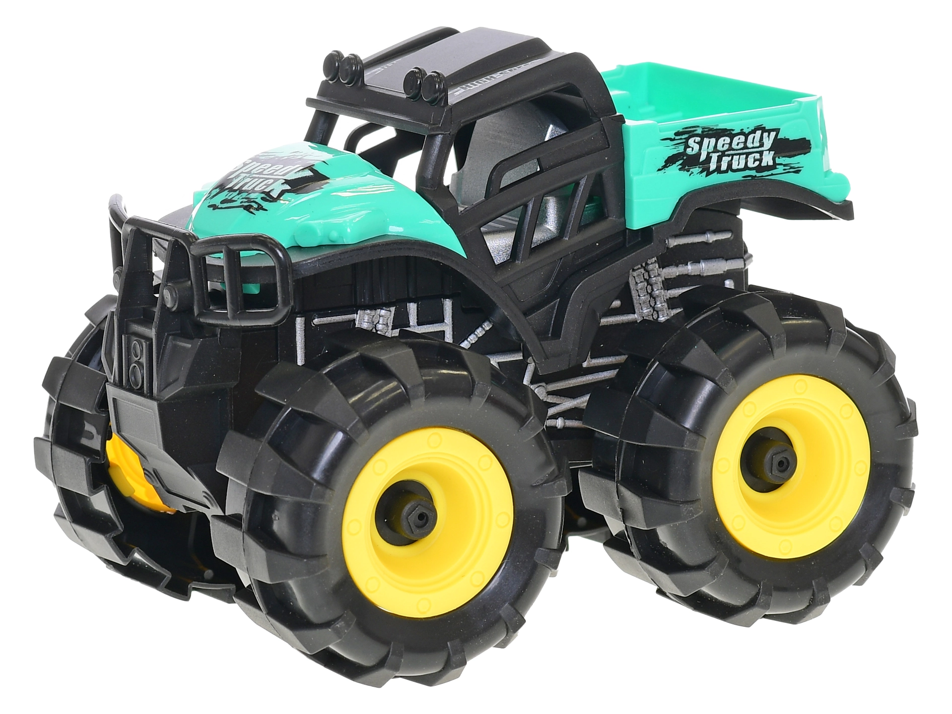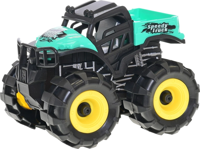 Zábavné terénne autíčko so zotrvačníkovým pohonom poteší malých dobrodruhov. Stačí ho natiahnuť dozadu a pustiť – auto sa samo rozbehne dopredu bez potreby batérií. Robustná konštrukcia a veľké kolesá zvládnu prekážky doma aj vonku, čím podporujú kreatívnu hru a rozvoj motoriky. K dispozícii v troch farbách: tyrkysová, zelená a červená.