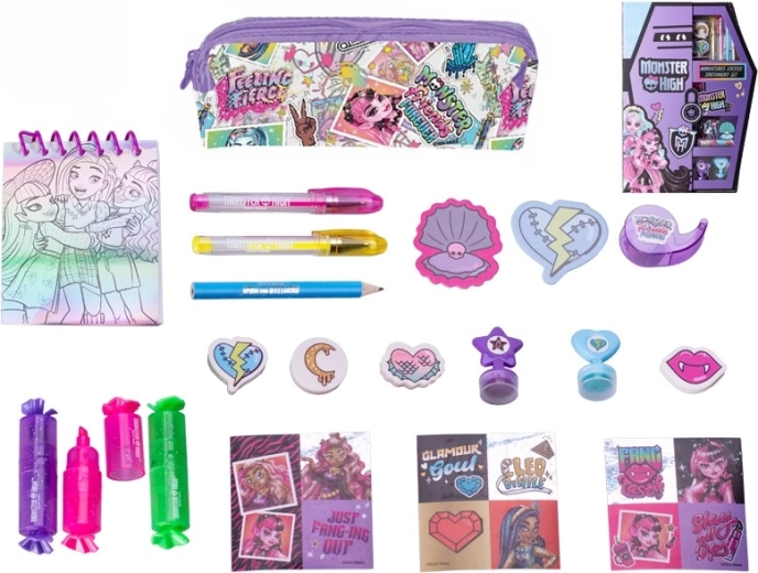Štýlové puzdro s motívmi MONSTER HIGH poteší každého fanúšika. Obsahuje pastelky, fixky, ceruzky a samolepky s obľúbenými postavami ako Draculaura, Frankie Stein a Clawdeen Wolf. Kompaktné a ľahko prenosné puzdro je ideálne do školy, na doma aj na cesty a podporuje kreativitu a fantáziu detí od 8 rokov.