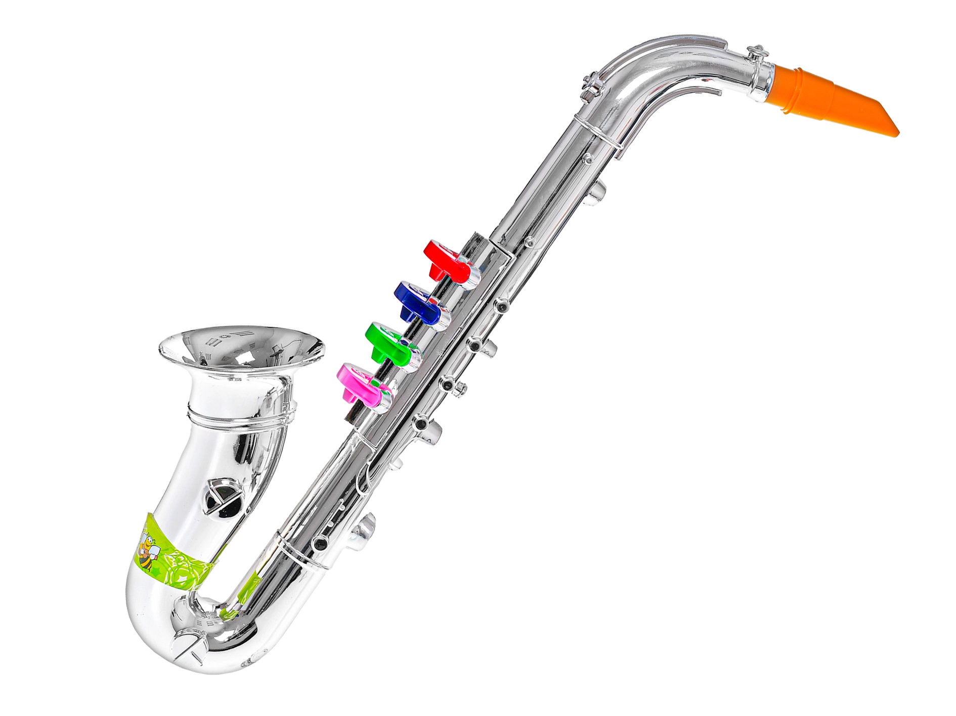 Objavte ideálny prvý hudobný nástroj pre malých muzikantov: detský saxofón s dĺžkou 38 cm. Je ľahký, jednoducho ovládateľný a svojím strieborným leskom a 4 farebnými klapkami deti okamžite zaujme. Podporuje hudobný sluch, rytmické cítenie a jemnú motoriku, takže je skvelou voľbou pre deti od 3 rokov. Dodáva sa balený v krabičke – pripravený ako darček.