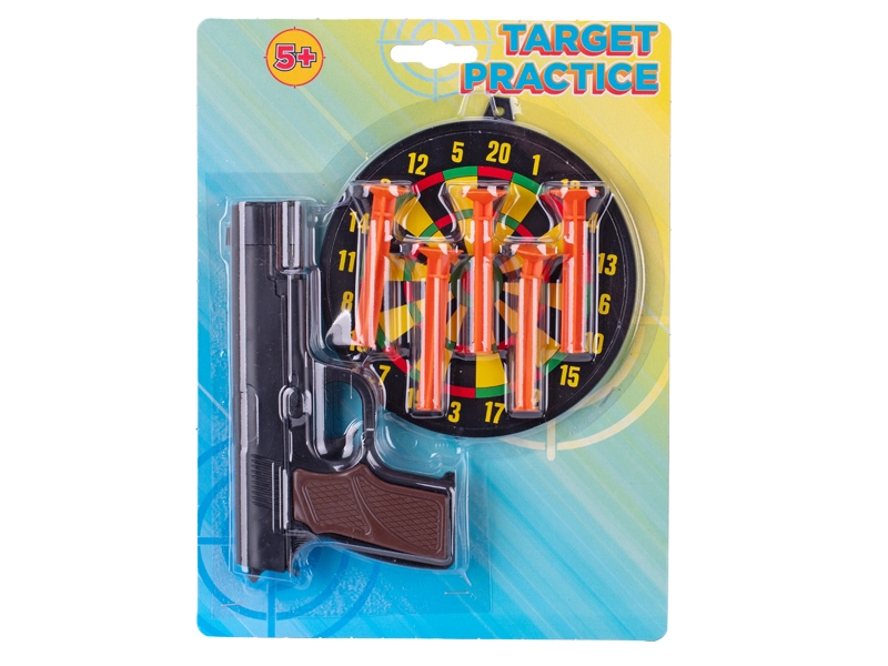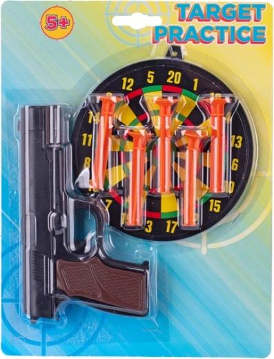 Zábavná a bezpečná hračka pre malých strelcov – detská pištoľ na prísavky s dĺžkou 15 cm s terčom. Vďaka mäkkým nábojom s prísavkami je streľba bezpečná a vhodná pre deti od 5 rokov. Súčasťou balenia je terč na tréning presnosti, ktorý podporuje koordináciu pohybov a rozvíja jemnú motoriku. Dostupná v dvoch farebných variantoch – s čiernou alebo striebornou hlavňou.