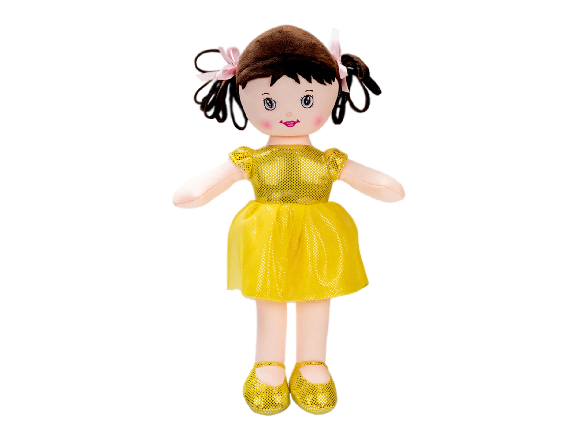 Bábika Viktorka je mäkká látková hračka navrhnutá na bezpečné a pohodlné hranie aj mojkanie. Vďaka ľahkej konštrukcii a príjemnému materiálu sa skvele drží v malých rúčkach. Lesklé žlté šatočky a topánočky zaujmú na prvý pohľad a podnecujú detskú predstavivosť.