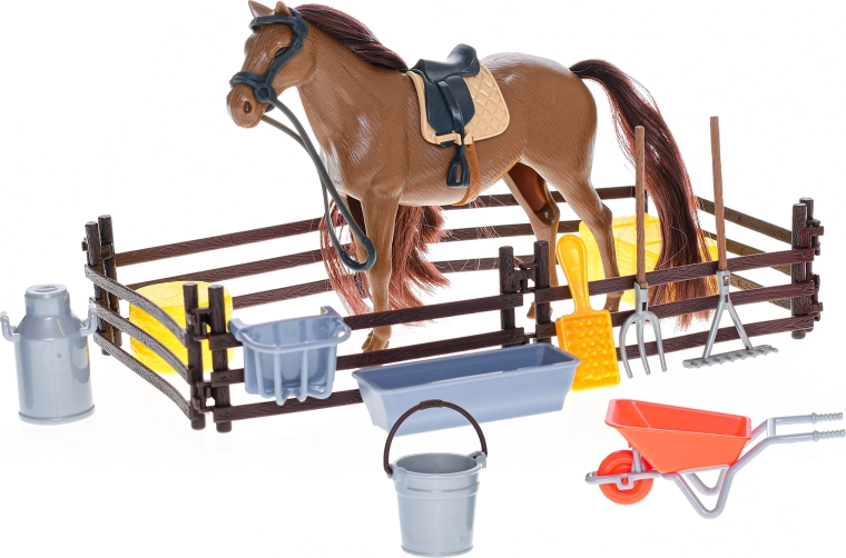 Objavte svet farmárskych dobrodružstiev s koníkom od Kids Globe. Figúrka s výškou 18 cm je detailne spracovaná a doplnená príslušenstvom, s ktorým sa deti zahrajú na skutočnú starostlivosť o kone – od kŕmenia po čistenie. Hračka je vyrobená z kvalitného a odolného plastu, takže zvládne každodenné hranie aj časté prenášanie.