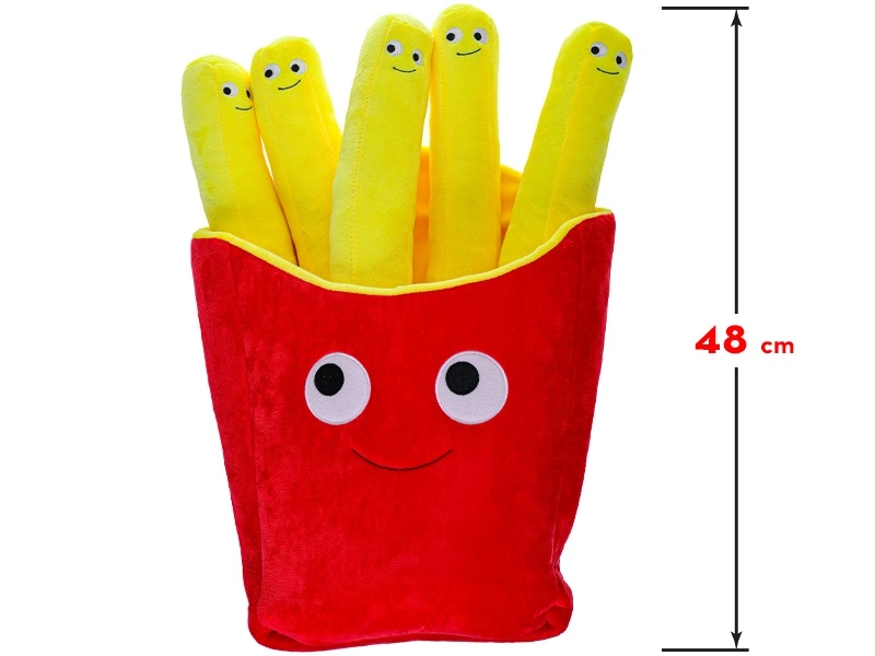Roztomilá plyšová hračka v tvare hranoliek s usmiatou tváričkou prináša deťom od narodenia veľa radosti a pohodlia. Vďaka dĺžke 48 cm a mäkkučkému plyšu je ideálna na túlenie aj hranie. Ľahká konštrukcia zabezpečuje ľahké prenášanie doma, v kočíku i na cestách, zatiaľ čo veselý dizajn podporuje detskú predstavivosť a kreativitu.