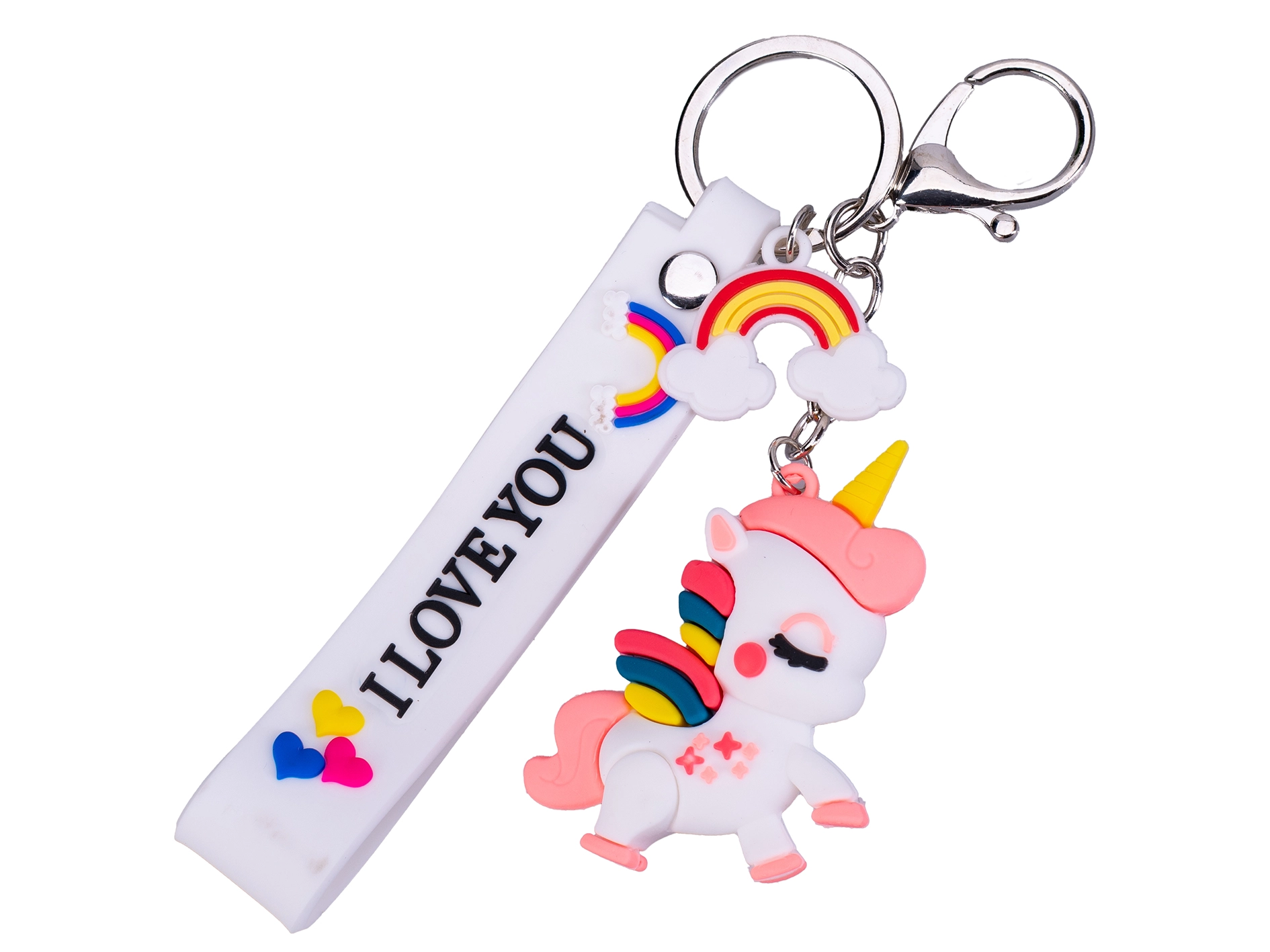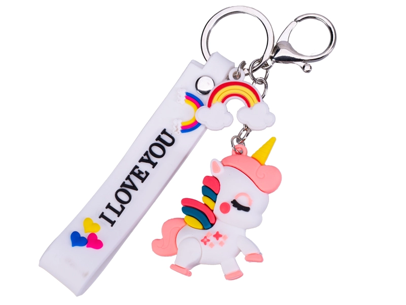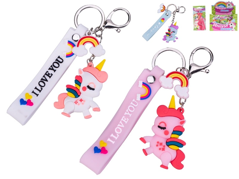 Roztomilý prívesok na kľúče s motívom jednorožca poteší deti aj dospelých. Ponúka pestré farby, mäkký silikónový popruh s nápisom I LOVE YOU a odolné kovové krúžky na jednoduché pripnutie ku kľúčom či taške. Ľahký, no odolný doplnok v ružovej, modrej a bielej variante.