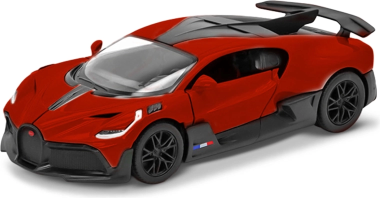 Kinsmart BUGATTI Divo je detailný kovový model slávneho hypersportu, ktorý vyniká realistickým spracovaním a zábavnou funkciou spätného chodu. Stačí natiahnuť, pustiť a model sa sám rozbehne vpred. Vďaka pevnému kovovému telu s plastovými doplnkami vydrží intenzívne hranie a poteší aj náročnejších zberateľov.
