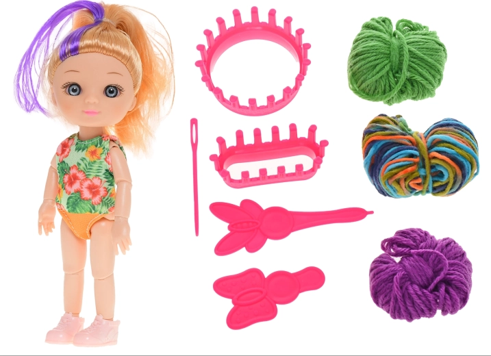 Tento kreatívny set spája hru s učením. Bábika vo veľkosti 16 cm sprevádza deti pri prvých krôčikoch do sveta pletenia – s pletacím stavom a priadzou si môžu vyskúšať základy a vytvoriť si malé vlastnoručné výtvory. Ideálny darček pre malé šikovné ruky.