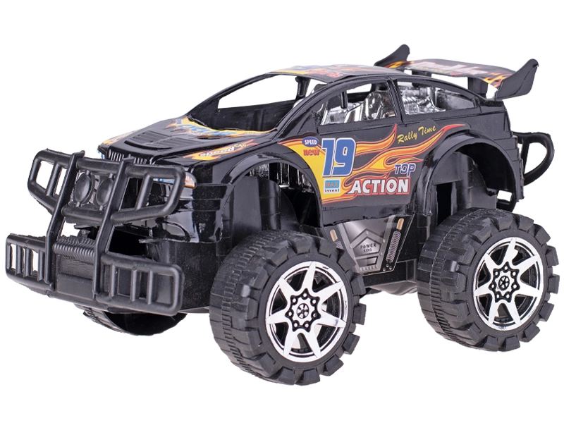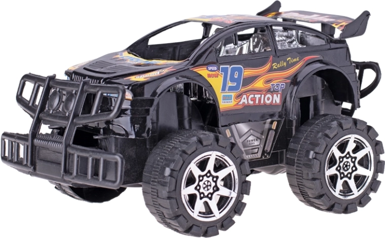 Veľké kolesá a zvýšený podvozok si poradia s nerovnosťami, čo podnecuje fantáziu detí a podporuje ich koordináciu a jemnú motoriku. Kvalitný plast zaisťuje dlhú životnosť pri každodennom hraní. Vyberte si z obľúbených farieb – modrej alebo čiernej – a užite si preteky a kaskadérske jazdy.